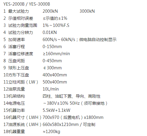 YES-2000B; 3000B / 2000kN ;3000kN;YES-B系列數(shù)顯式壓力試驗(yàn)機(jī)